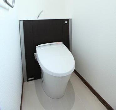 水栓にもこだわった、シンプルで清潔感のあるトイレとなりました。