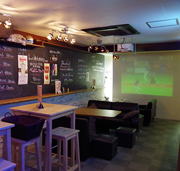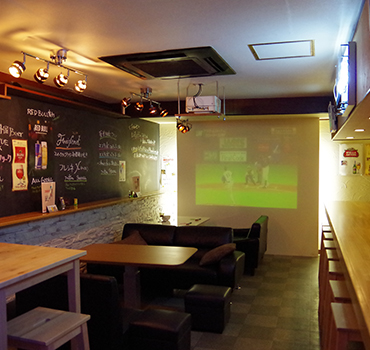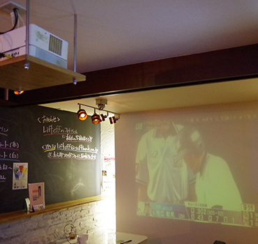 カウンターに置いていたプロジェクターも天井吊りへ変更し、空間を無駄なく活用しました。