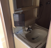 段差となっていた配管の入っている後部部分を敢えて利用し、棚を造作したことで、